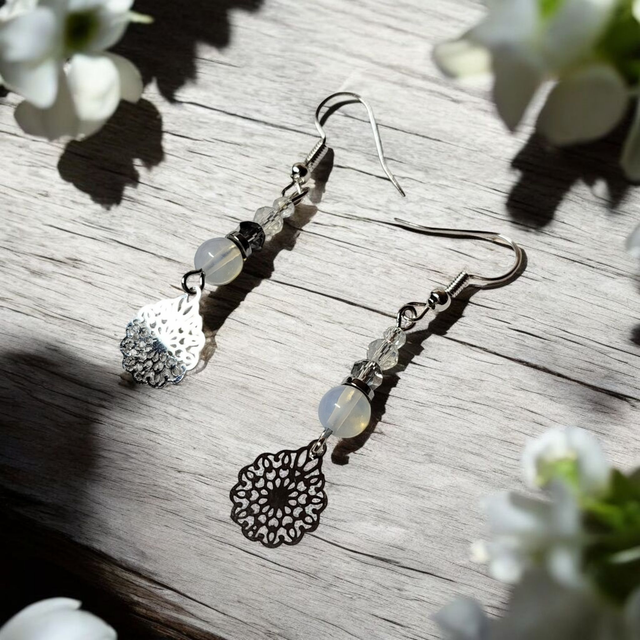 Découvrez les boucles d'oreilles de la collection les prix doux, fabriquées à la main près de Nice avec des perles naturelles, des perles de cristal, des fermoirs et connecteurs en acier inoxydable Elles mesurent 3.8 cm environ plus le fermoir.