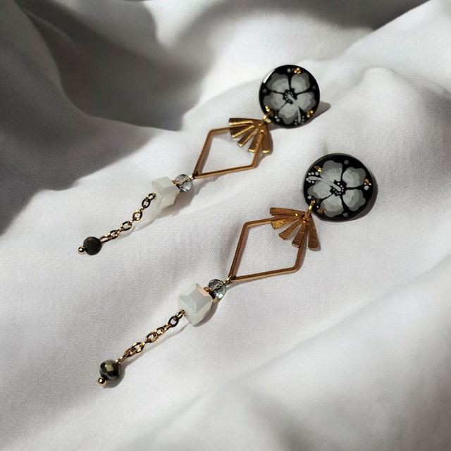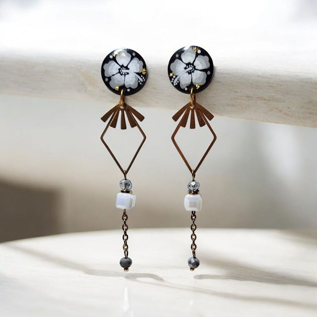 Ces boucles d'oreilles sont très légères et confortables à porter, vous permettant de les arborer toute la journée sans aucun problème. Chaque paire est une pièce unique, créée avec amour et attention aux détails, pour vous offrir un accessoire de mode qui vous ressemble.