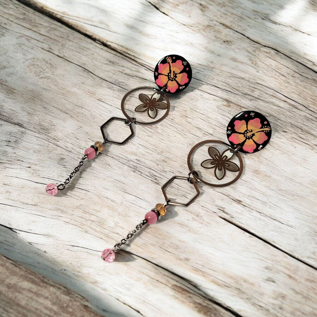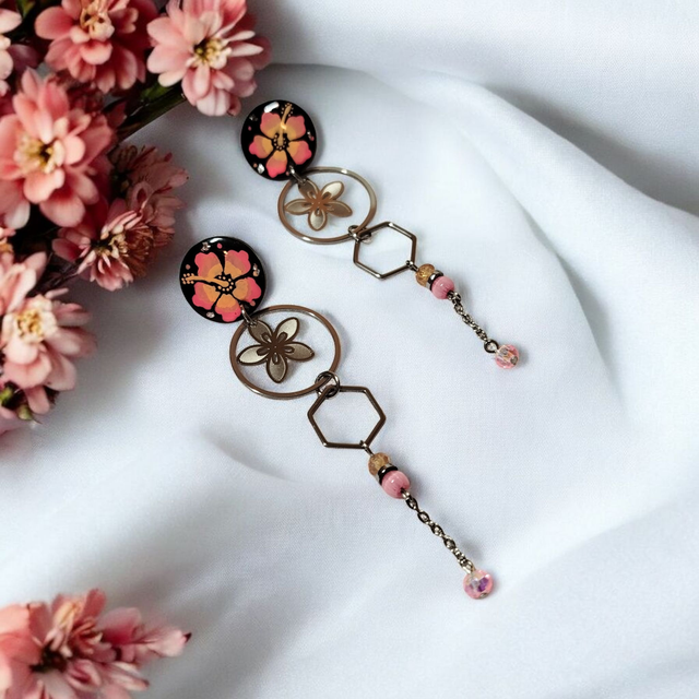 Découvrez les boucles d'oreilles Flora dessinées à la main. Ces boucles d'oreilles pendantes sont des créations uniques et élégantes, fabriquées à la main avec amour et passion. C'est une exclusivité Mélodie en Couleurs.