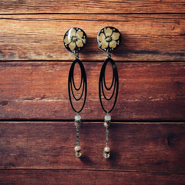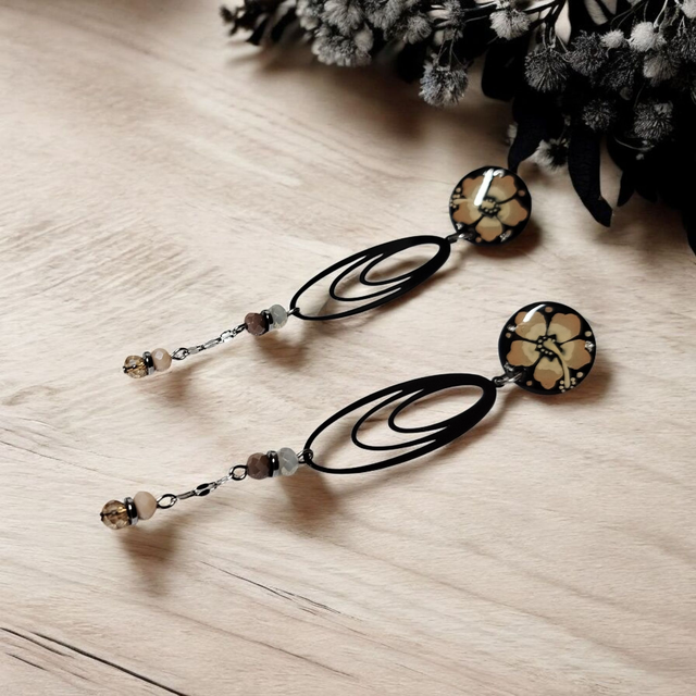 Boucles d'oreilles Flora taupe et noir