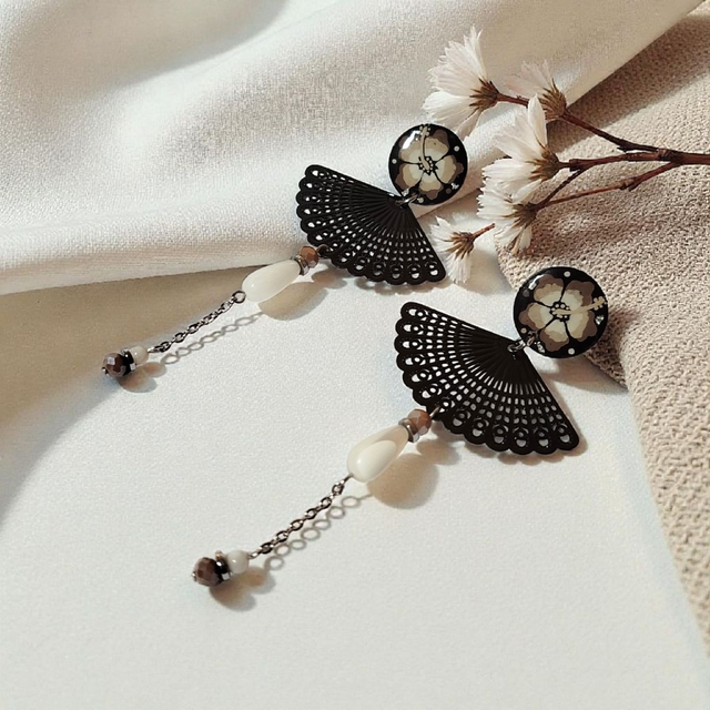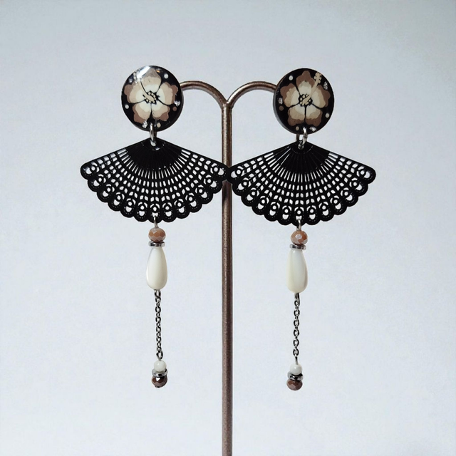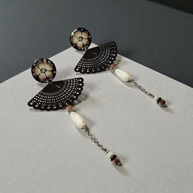 Boucles d'oreilles Flora taupe et noir blanc