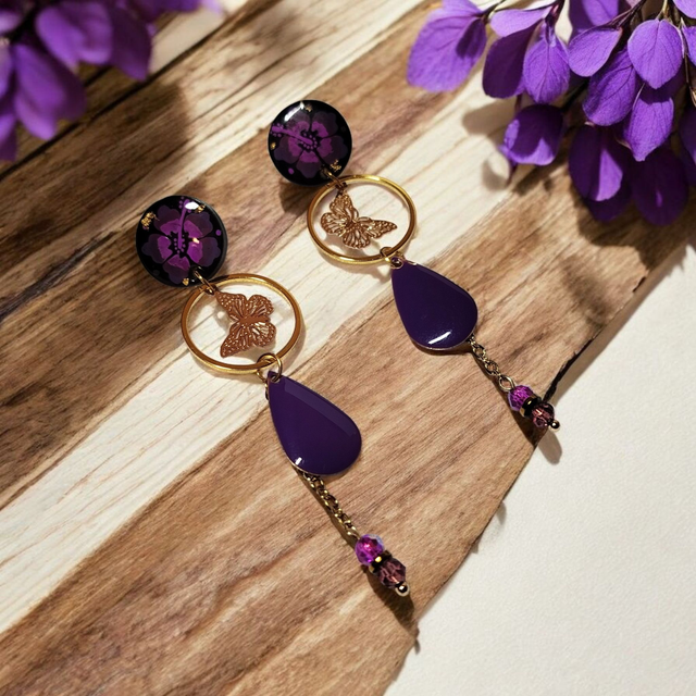 Boucles d'oreilles Flora violet