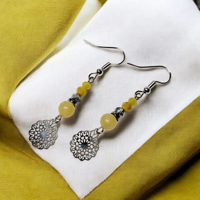 Découvrez les boucles d'oreilles de la collection les prix doux, fabriquées à la main près de Nice avec des perles naturelles, des perles de cristal, des fermoirs et connecteurs en acier inoxydable Elles mesurent 3.7 cm environ plus le fermoir.