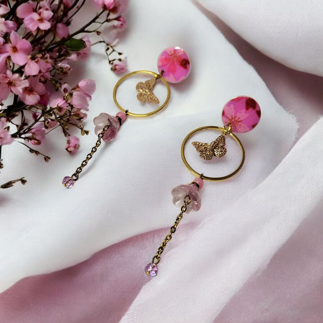 Les puces d'oreilles sont dotées de motifs japonais puis protégées par une couche de résine pour une finition brillante et durable.