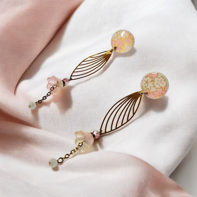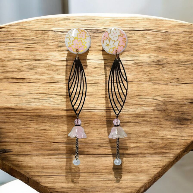 Boucles d'oreilles pendantes motifs japonais rose