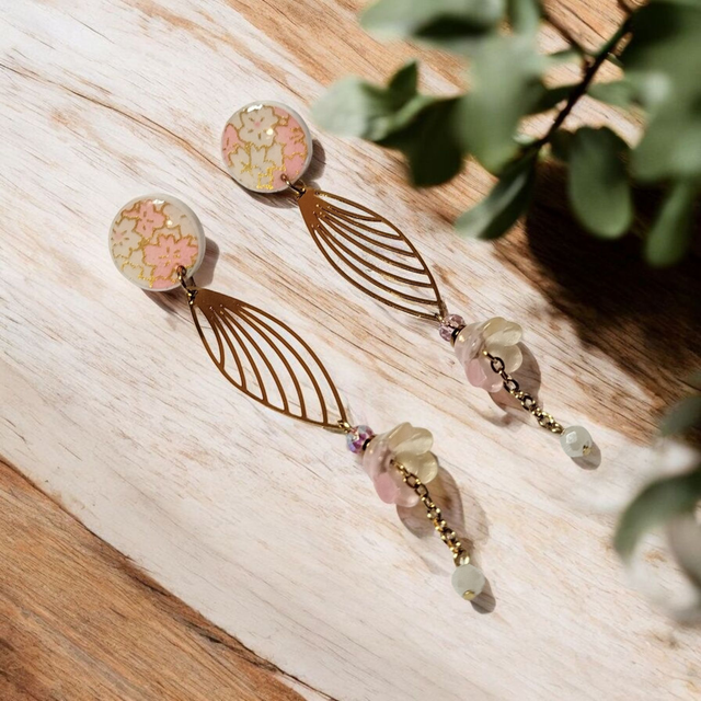 Les puces d'oreilles sont dotées de motifs japonais puis protégées par une couche de résine pour une finition brillante et durable.