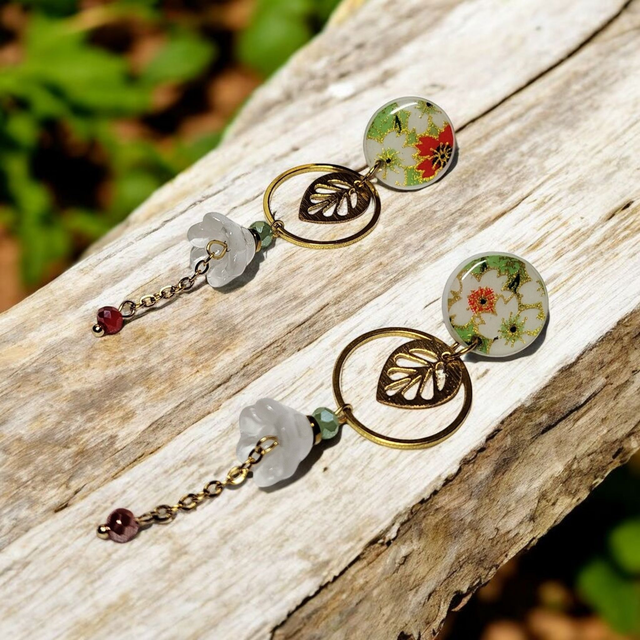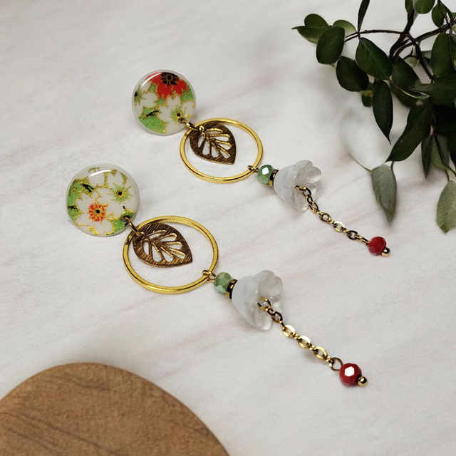 Les puces d'oreilles sont dotées de motifs japonais puis protégées par une couche de résine pour une finition brillante et durable.