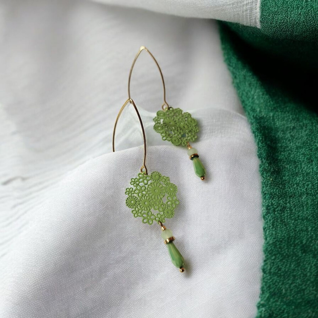 Découvrez les boucles d'oreilles de la collection les prix doux, fabriquées à la main près de Nice avec des perles de cristal, des fermoirs en acier inoxydable, des connecteurs en laiton. Le pendant mesure 4 cm plus le fermoir 3 cm environ.
