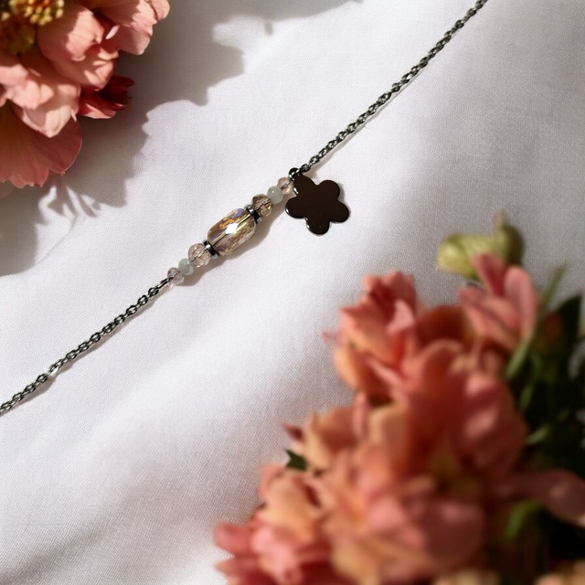 Découvrez les bracelets acier inoxydable, conçu imaginé et fabriqué à la main près de Nice avec des perles de cristal et de l'acier inoxydable de haute qualité. Chaque pièce est conçue pour s'adapter parfaitement aux poignets de 16 à 21 cm, offrant un ajustement confortable et élégant. La chaînette de prolongation mesure 5 cm.