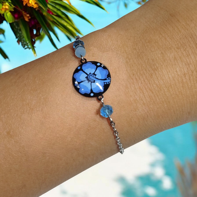 Bracelet dessiné Flora acier inoxydable bleu
