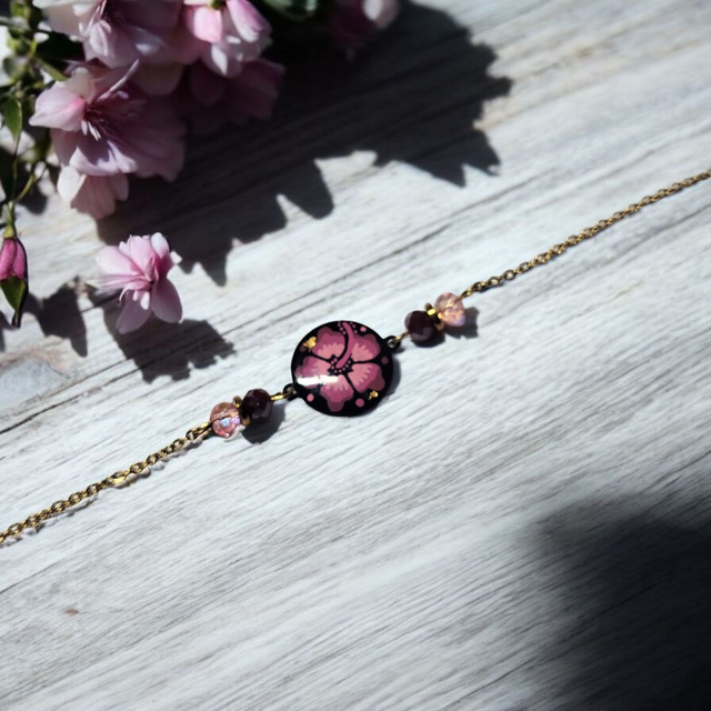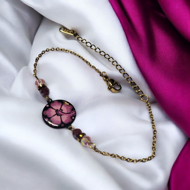 Bracelet dessiné Flora acier inoxydable rose foncé