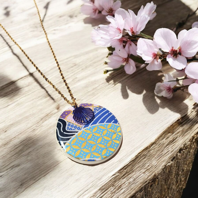 Découvrez les colliers japonais, inspirés par les motifs traditionnels, résinés à la main avec soin et attention aux détails.