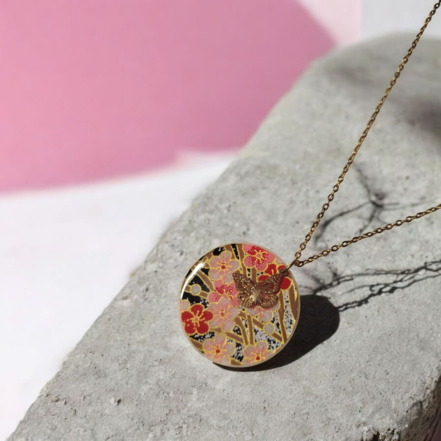 Découvrez les colliers japonais, inspirés par les motifs traditionnels, résinés à la main avec soin et attention aux détails.