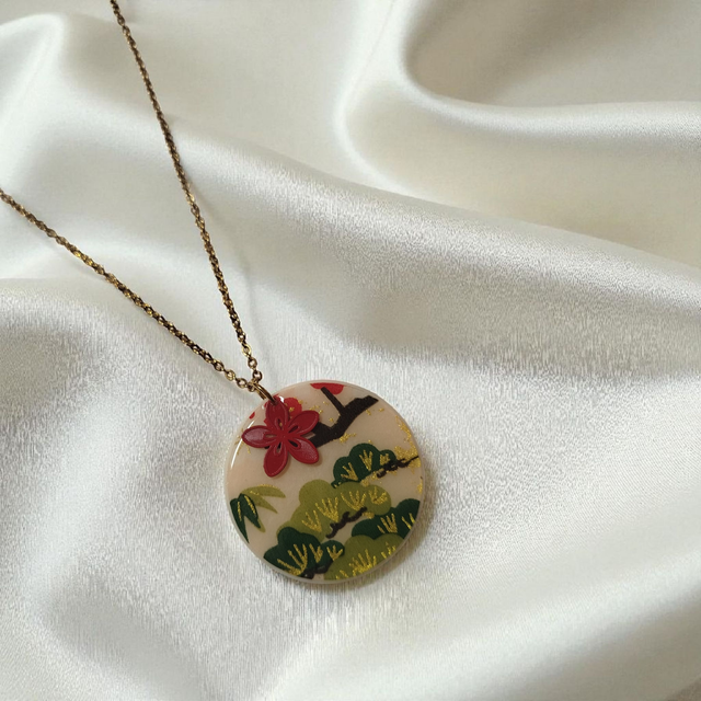 Découvrez les colliers japonais, inspirés par les motifs traditionnels, résinés à la main avec soin et attention aux détails.