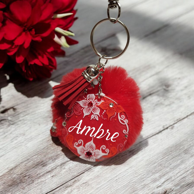 Bijou de sac prénom personnalisé dessiné à la main rouge